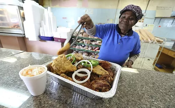 Over the past three decades, Little Haiti's Pack Supermarket has become a kind community for the surrounding neighborhood, all thanks to fried chicken. During lunch, dozens of cops, executives, and working stiffs line up for the stuff. Sunday mornings, crowds of churchgoers mingle with bouncers from downtown clubs and spandex-clad cyclists while awaiting fragrant Styrofoam containers filled with juicy poultry and the slightly sweet ovals of the smashed-and-fried plantains Haitians term "banane." It's a meal that could be breakfast or dinner. Pack's recipe is a spinoff of the classic that calls for skin-on legs to be marinated in a spicy, acidic amalgam of vinegar, lime juice, garlic, onion, and hot peppers such as Scotch bonnets.