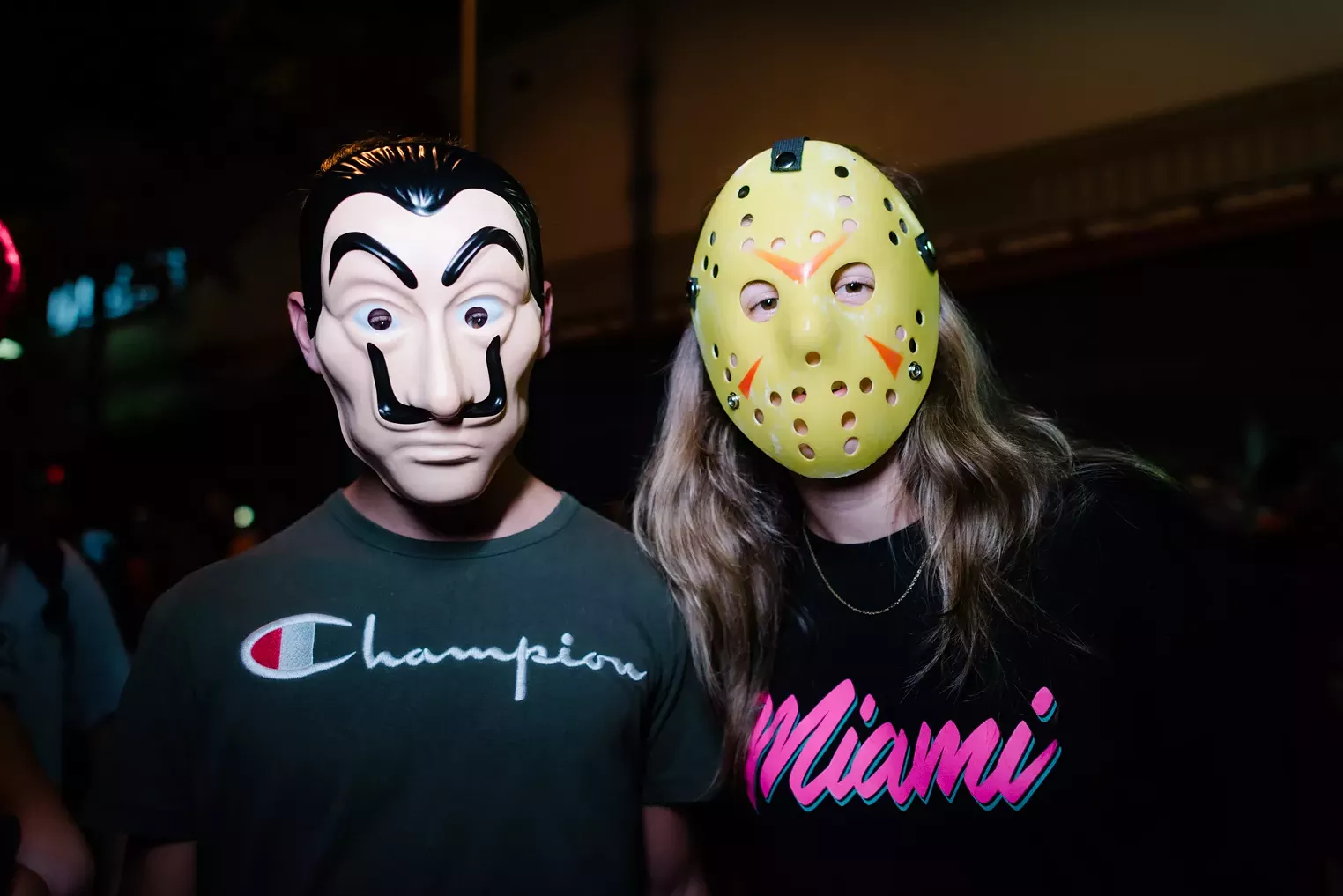 On Halloween night, Lincoln Road swarmed with a sea of strange creatures and colorful characters. The popular promenade was blocked off to cars with DJ booths poised along the intersecting streets so the mass of monsters was free to wander the avenue and get down. Photography by Karli Evans.
