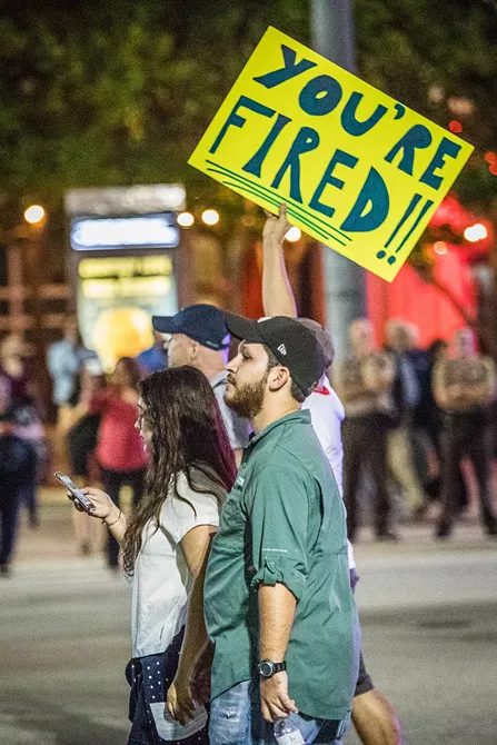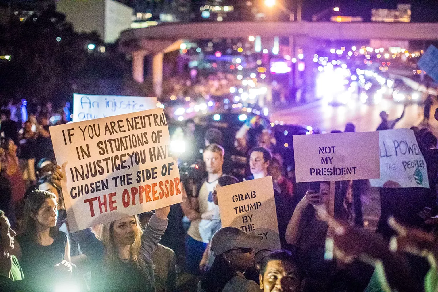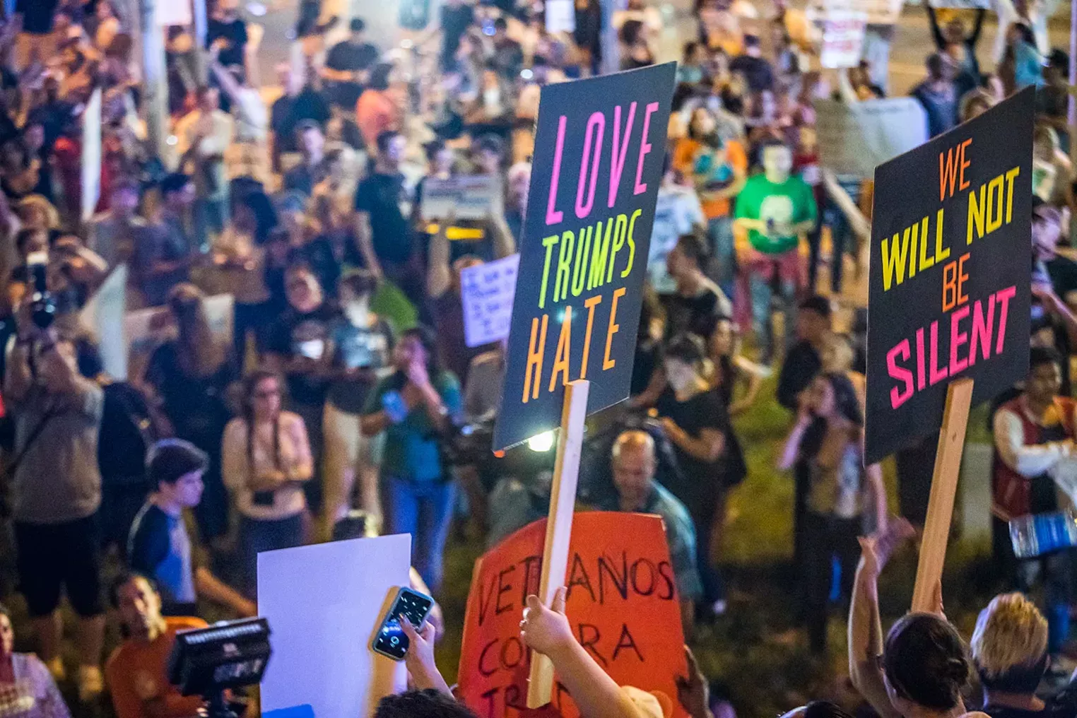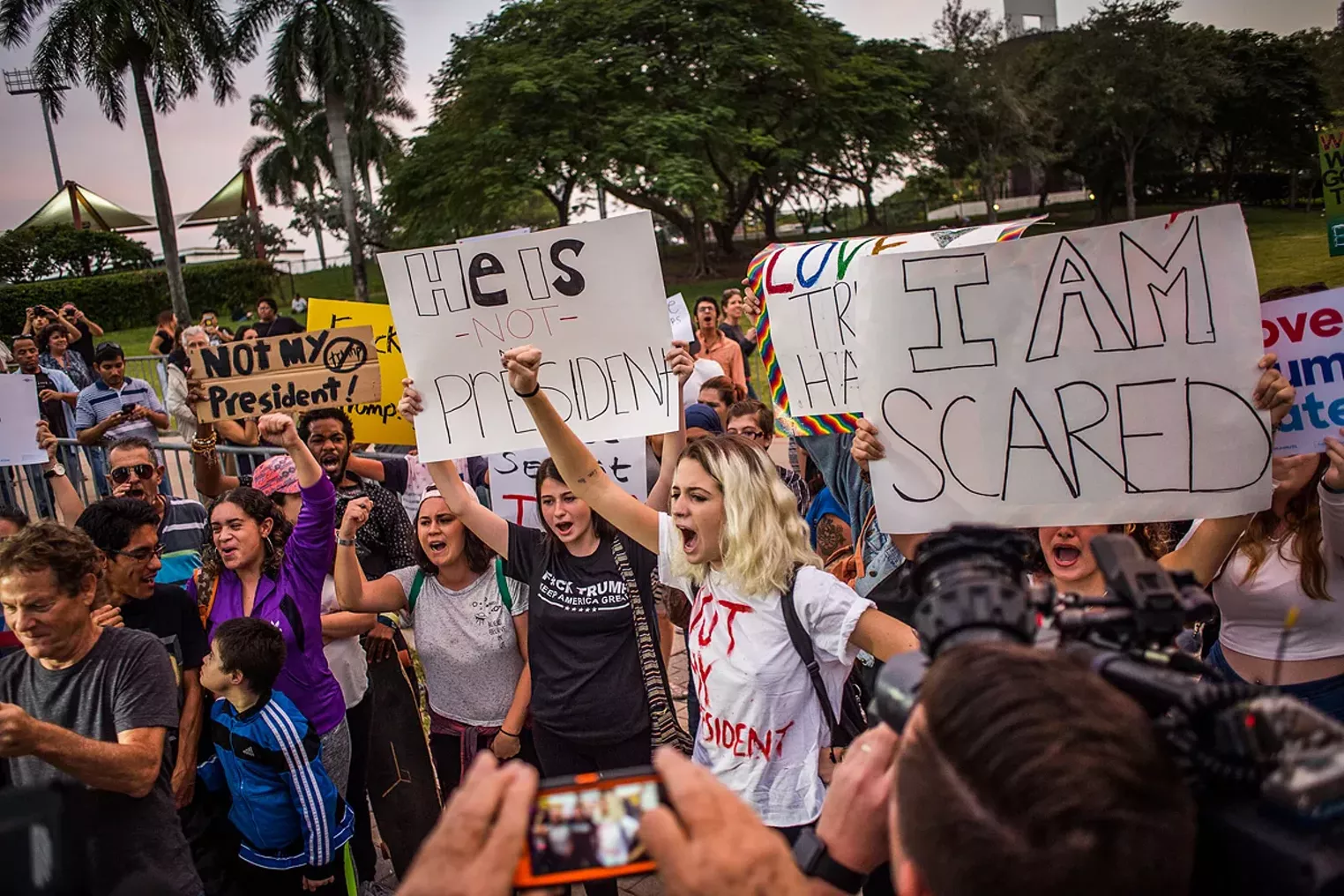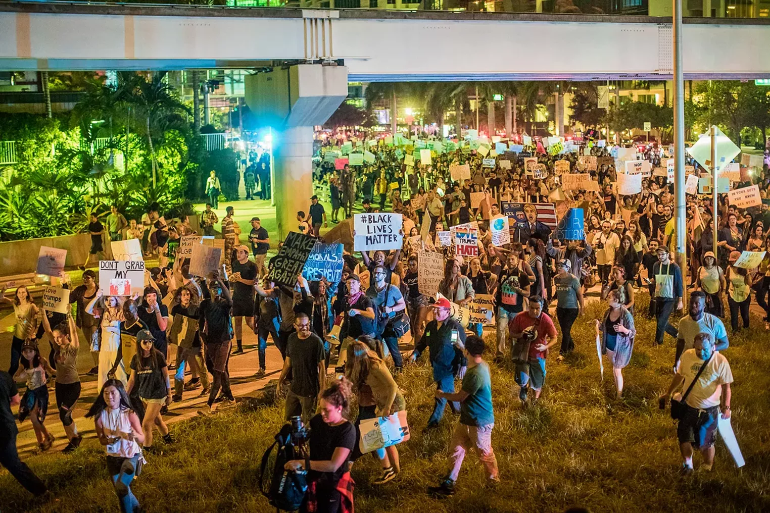 Thousands of peaceful protesters marched against President-elect Donald Trump in Miami on Friday, November 11. The rally marked the first anti-Trump protest of its magnitude in the city. Along with assistance from Miami Police officers, protesters shut down traffic on I-395 in both directions for 35 minutes. The march continued back down Biscayne Boulevard and through downtown, where the protesters marched onto I-95 north, and back around to I-395 East.