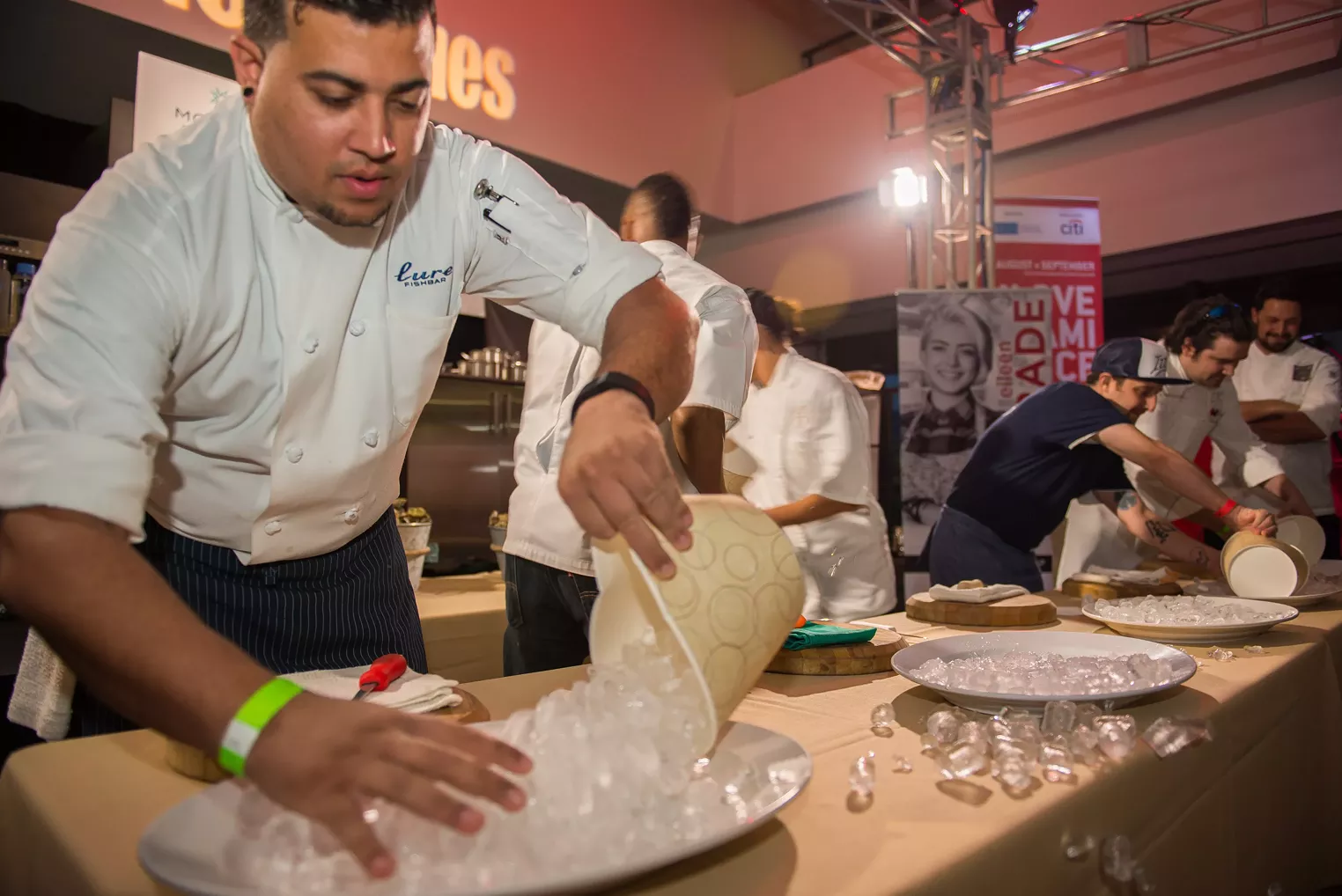 Miami Spice kicks off Saturday, but before enjoying those deals all over town, New Times and the Greater Miami Convention & Visitors Bureau brought Iron Fork to the Hyatt Regency in downtown Miami on Thursday, July 30. Restaurants like J&G Grill, Midtown Oyster Bar, Miami Smokers, Azucar, Rusty Pelican, Cibo Wine Bar, and more served delicious bites, while MC Kitchen's Dena Marino and Finka Table & Tap's Eileen Andrade competed for the Iron Fork title. In the end, Marino took home the title.