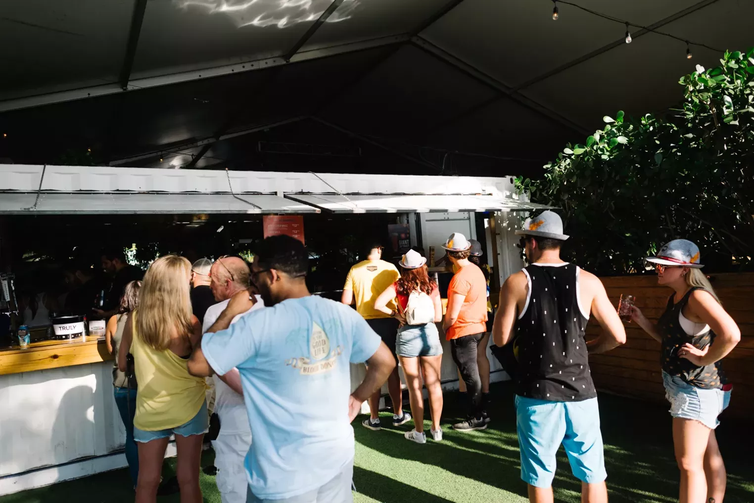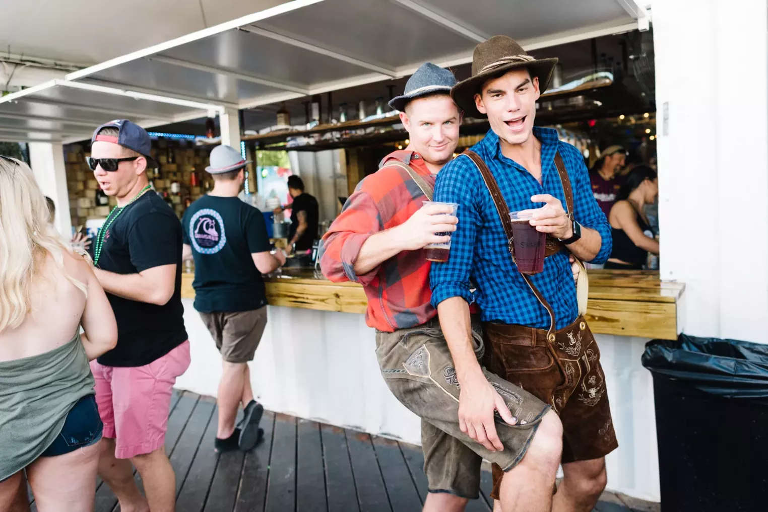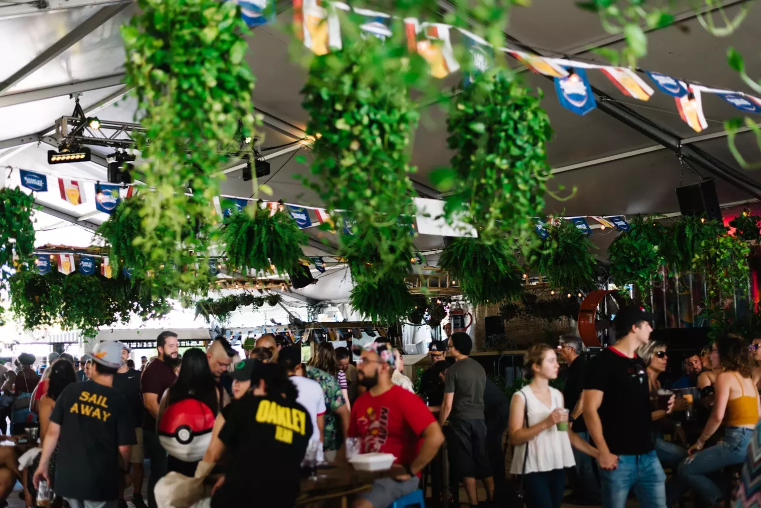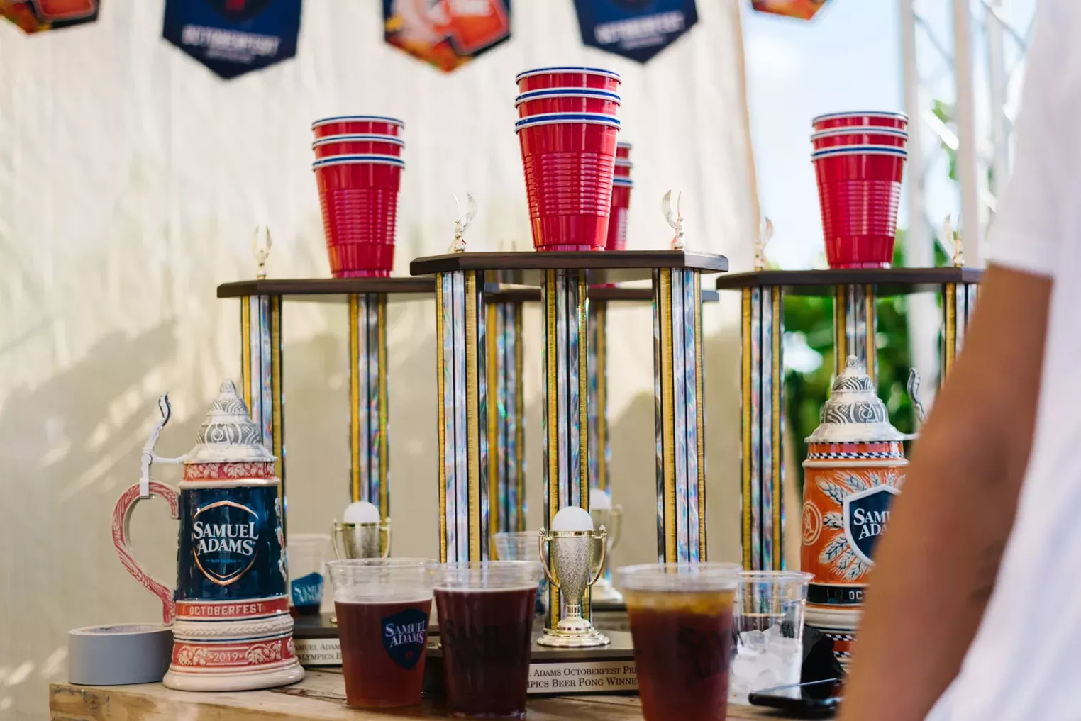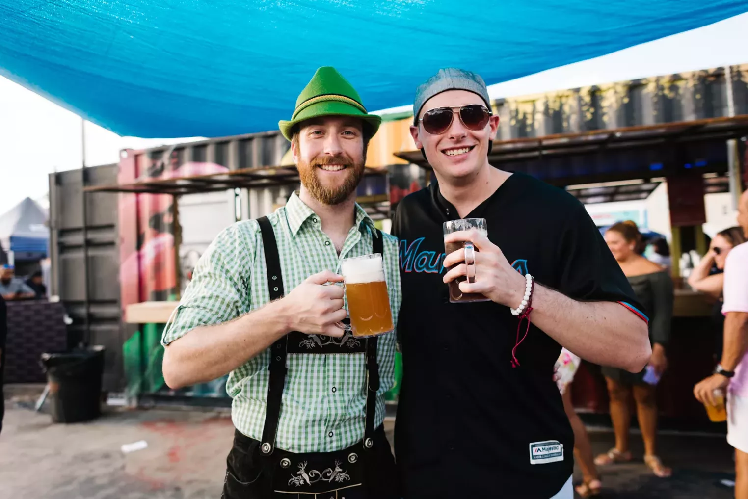 Wynwood Marketplace filled to the brim with beer drinkers on Saturday, September 28, for Wynwood's Octoberfest, presented by Sam Adams. The tented center stayed cool with a large selection of lagers on tap and live music radiating from the center stage, while outside the local beer pong tournament heated up. Photography by Karli Evans.