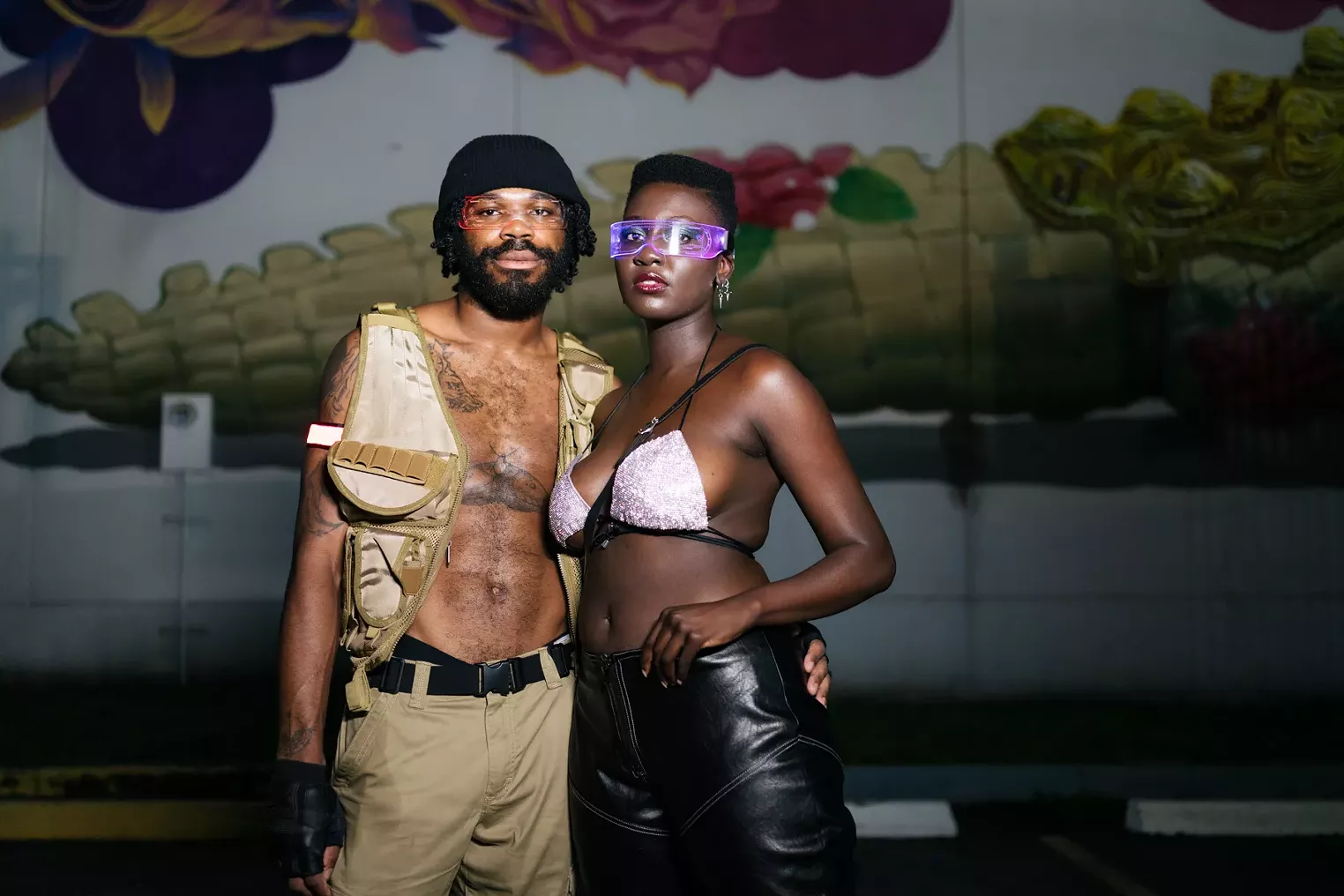 An eclectic crowd braved the rain and mud to attend the first day of III Points on Friday, October 22, 2021, after the festival's two-year hiatus. Here is a collection of some of the interesting characters New Times ran into across this year's expansive all-outdoor arrangement. Photography by Karli Evans.
