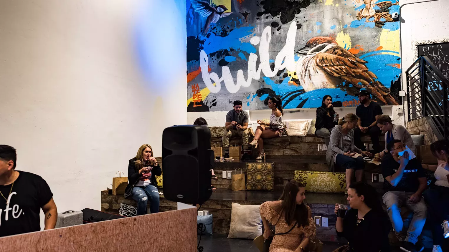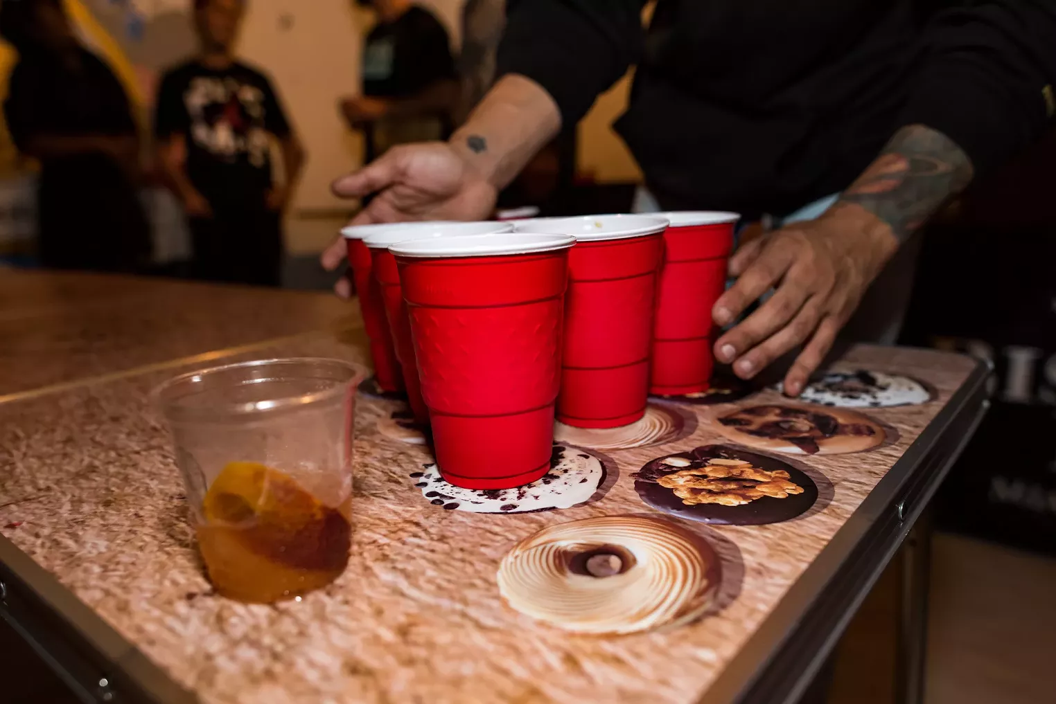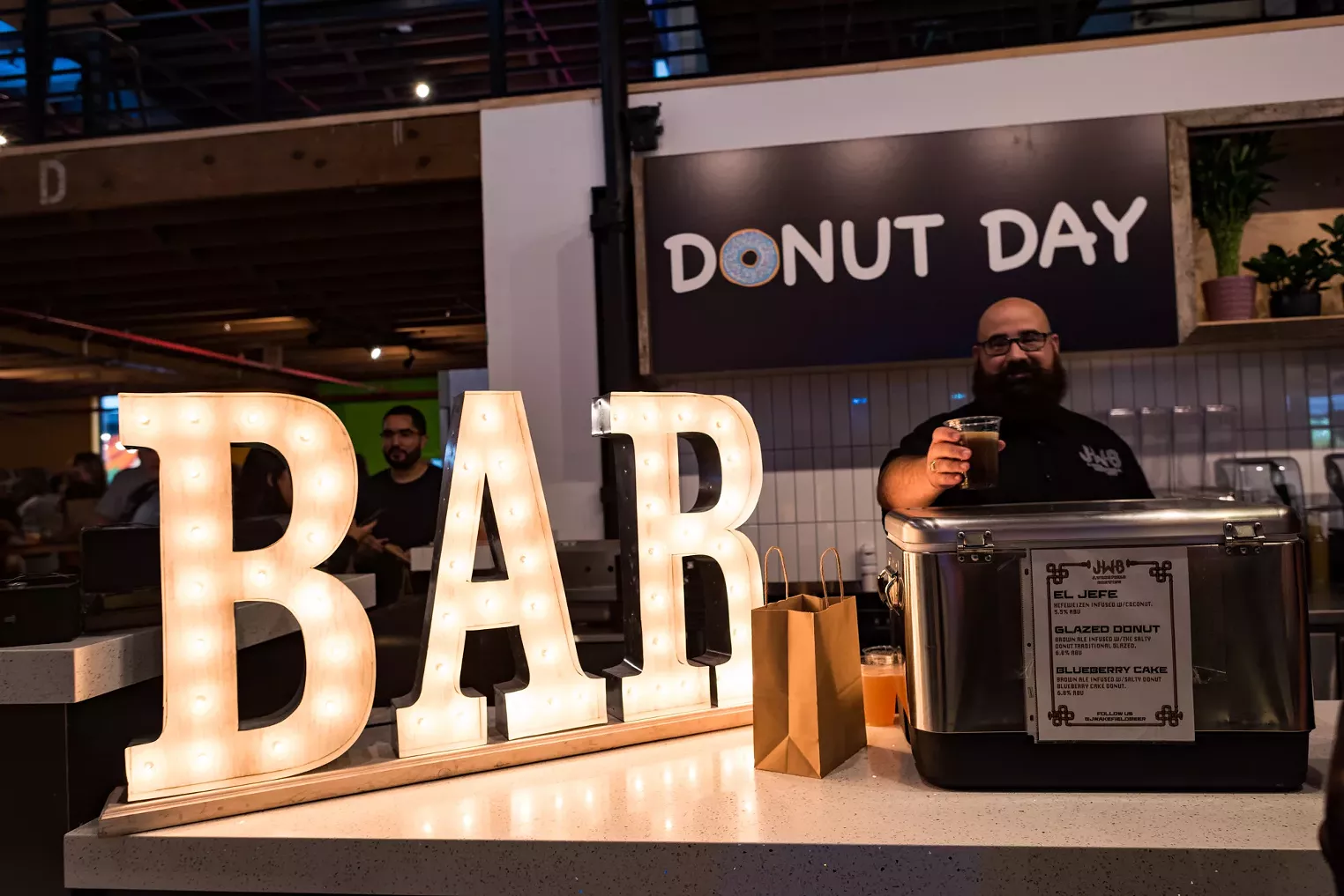 Wynwood's BarWorks hosted its second-annual National Doughnut Day celebration Friday, June 2, featuring a special dulce de leche doughnut from the Salty Donut, doughnut-infused brews from J. Wakefield, signature cocktails, and fresh bites from Coyo Taco. The two-story spot housed local sounds and a hungry crowd who enjoyed unlimited doughnuts between dancing, beer pong, Twister, and live art by colorschemer Cole Sager.
