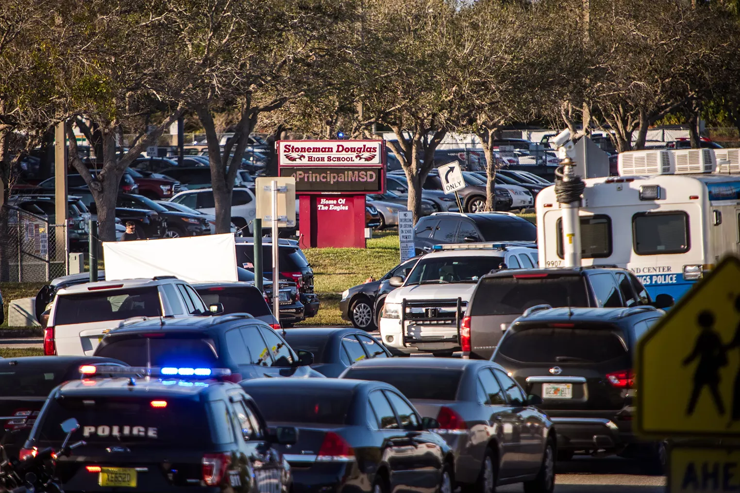 Wednesday, February 14, 19-year-old former student Nikolas Cruz opened fire on the Marjory Stoneman Douglas High School campus in Parkland, Florida. Cruz fled the scene after killing 17 people and injuring many more. The normally quiet Broward County suburb descended into chaos as concerned parents rushed to the school while police cleared the campus. Authorities eventually reunited students with their parents at a staging area at a nearby Marriott hotel.