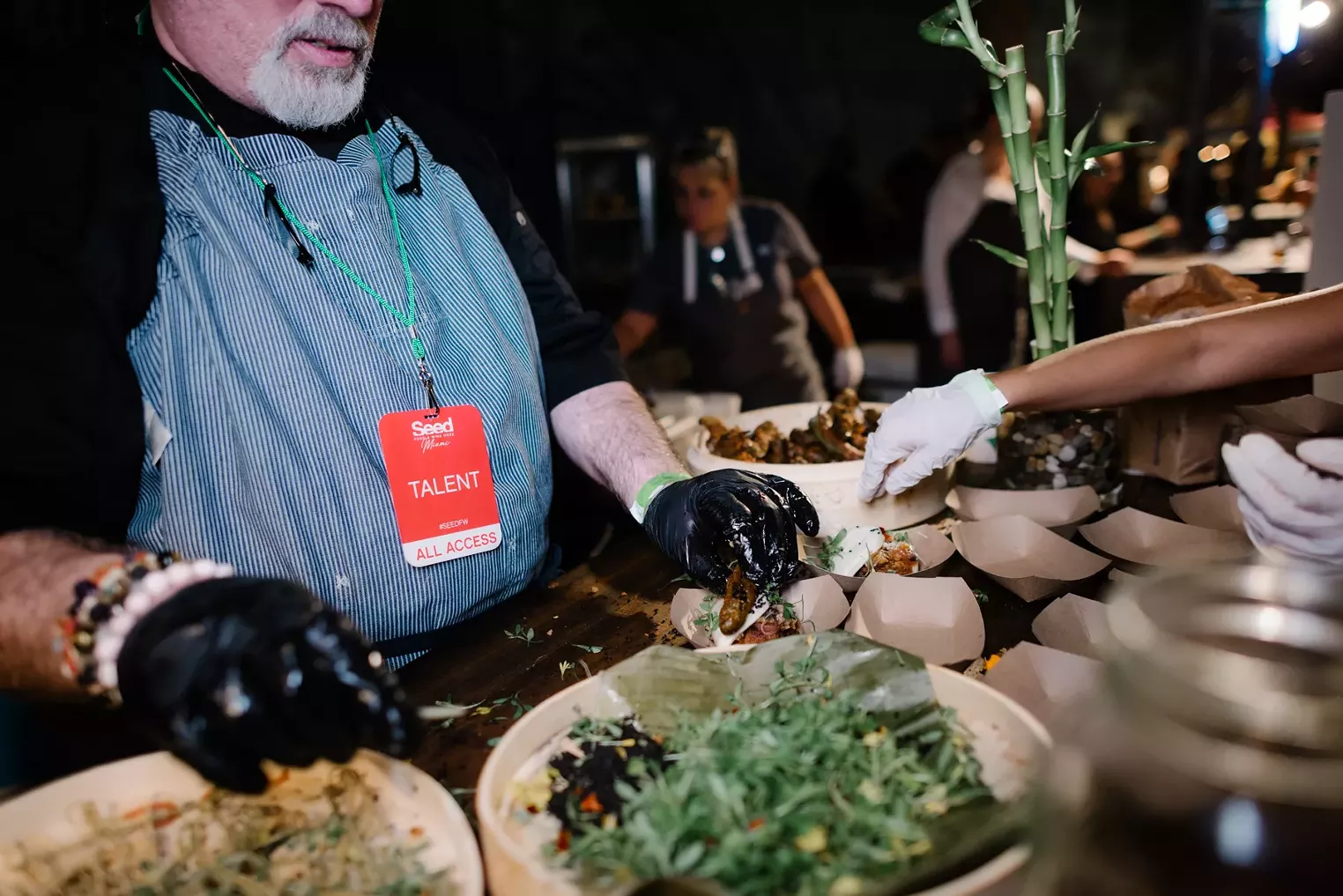 Seed Food & Wine's fifth-annual Plant-Based Burger Battle consumed the Miami Design District's Jungle Plaza Thursday, November 7, with a spread of 12 plant-based burgers for patrons to try. This year's selection included plates from local favorites Plant Miami, USBS, and Sergios, who delivered a Cuban take on the Beyond Burger, as well as visiting restaurants Shoulk from Washington D.C., Meta Burger Denver, Vegan Fine Foods, Stash House Market, and SunflowerFamily USA.